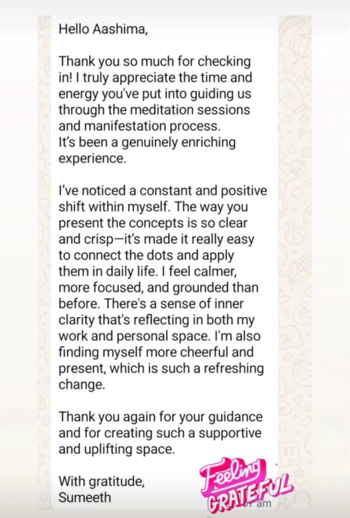 Aashima has trained and mentored hundreds of women to break free from emotional pain, reclaim their confidence, and awaken their true potential. Her work blends proven healing systems with compassionate guidance, creating a safe space for real, lasting change.